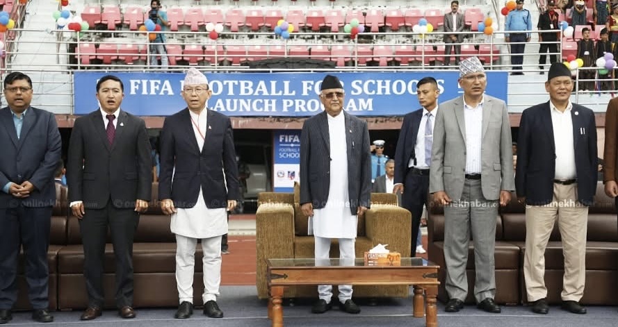 काठमाडौँ, १५ साउन – नेपालमा विद्यालयस्तरका बालबालिकाको समग्र विकासलाई प्रवर्द्धन गर्ने उद्देश्यसहित ‘फिफा फुटबल फर स्कूल्स’ कार्यक्रम औपचारिक रूपमा सुरु गरिएको छ। प्रधानमन्त्री केपी शर्मा ओलीले काठमाडौँको दशरथ रंगशालामा आयोजित विशेष समारोहमा कार्यक्रमको उद्घाटन गर्नुभयो।
