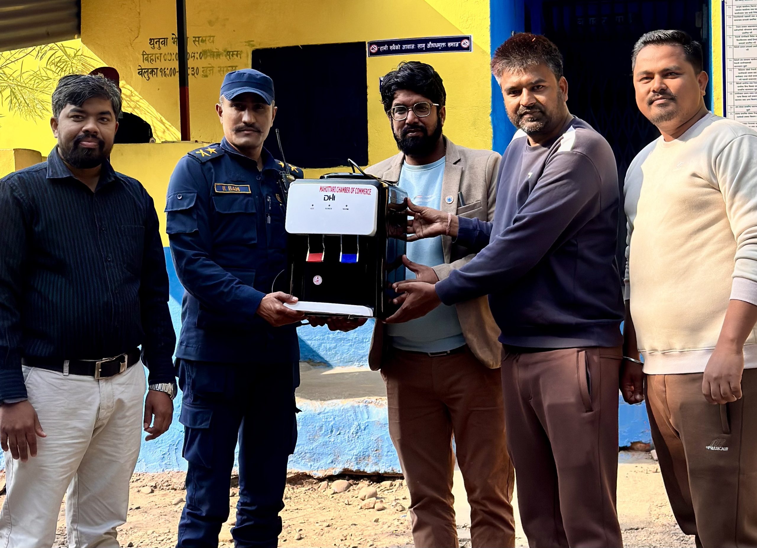 उक्त पानी डिस्पेन्सर महोत्तरी चेम्बर अफ कमर्सका प्रतिनिधिहरूले इलाका प्रहरी कार्यालय बर्दिबासका प्रमुख डिएसपी विकास बामलाई औपचारिक रूपमा हस्तान्तरण गरेका हुन्। जाडोको मौसममा स्वच्छ तथा तातो पिउने पानीको सहज उपलब्धता सुनिश्चित गर्ने मानवीय उद्देश्यले उक्त सहयोग प्रदान गरिएको चेम्बरले जनाएको छ।