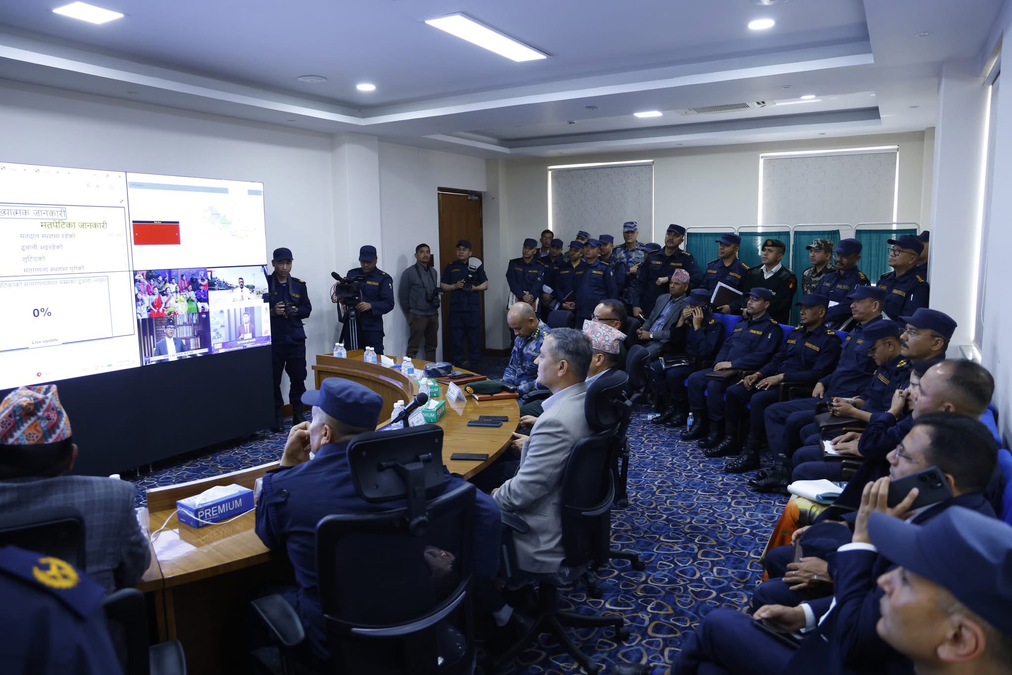 काठमाडौँ – गृहमन्त्री ओमप्रकाश अर्याल ले बुधबार नेपाल प्रहरी प्रधान कार्यालयस्थित केन्द्रीय निर्वाचन सेल र कमाण्ड सेन्टरको निरीक्षण गर्दै उपस्थित प्रहरी कर्मचारीहरूलाई निर्वाचन सुरक्षा व्यवस्थापनमा थप सक्रिय हुन निर्देशन दिनुभएको छ।