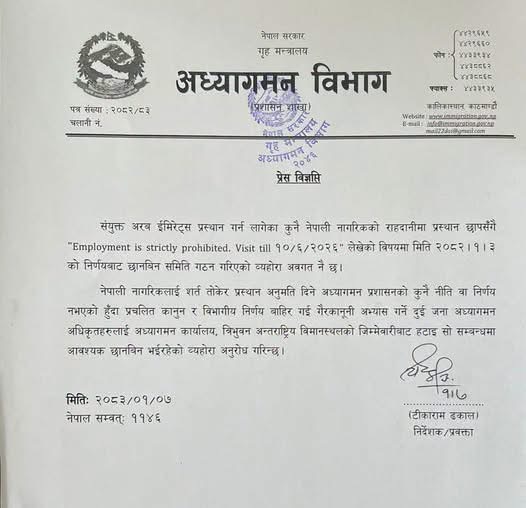 विशेषगरी युनाइटेड अरब इमिरेट्स जान लागेका नेपाली यात्रुहरूको पासपोर्टमा यस्तो टिप्पणी गरिएको विषय सार्वजनिक भएसँगै विवाद चुलिएको थियो।